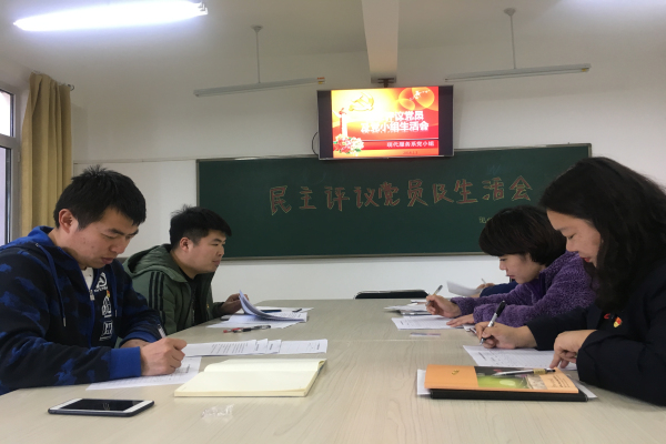 为进一步深入推进“两学一做”学习教育,贯彻全面从严治党工作要求,保持党的先进性和纯洁性,切实发挥党员先锋模范作用。根据校党支部下发的《关于开展2017年民主评议党员工作通知》文件要求,现代服务系党小组于2018年1月3日在3号教学楼508会议室开展党员民主评议。现代服务系主任、党小组组长于庆霞,学生管理副主任、党小组副组长闫博,系团总支书记隋新,辅导员王珊、杨世平参加会议。