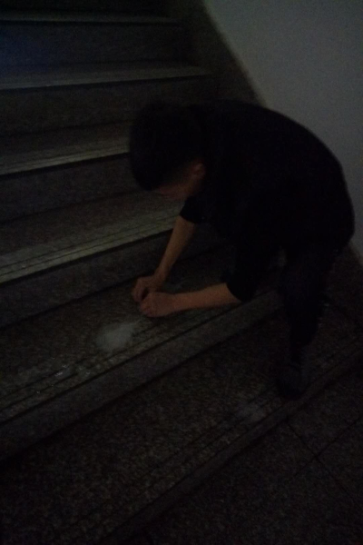 2017年11月22日晚7:00为美化校园环境,营造良好的生活学习环境,弘扬雷锋精神,现代服务系青年志愿者协会成员参与清扫校园活动,本次活动地点是综合楼,他们的任务是清理一楼至楼顶的楼梯及楼道上面的口香糖渍。