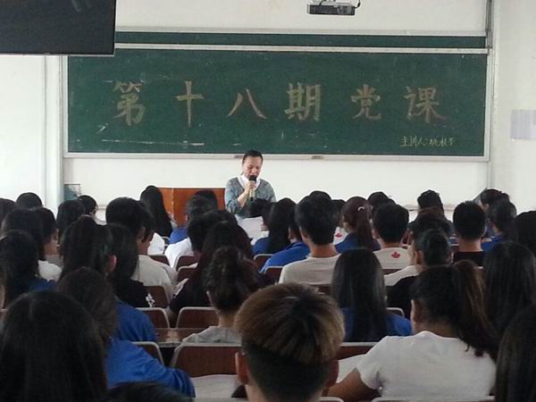 2014年6月10日中午12时,大连枫叶职业技术学院船舶与计算机系第十八期党课培训,在一号教学楼西多媒体教室隆重召开,本次党课由拥有42年党龄的优秀共产党员姚桂苓老师主讲,我院优秀党员教师及船舶与计算机系全体入党积极分子参加了此次党课。