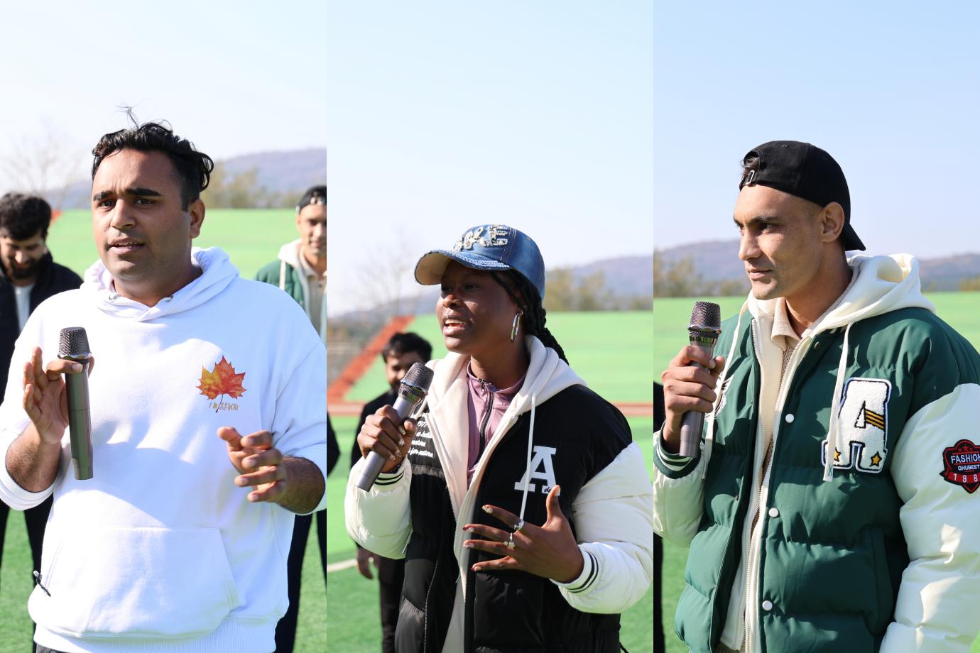 经过数小时的激烈角逐与欢乐互动,拓展活动在一片欢声笑语中落下帷幕。在活动的总结分享环节,留学生代表Sohaib、Aminata、Amran发表了热情洋溢的感言。他们用流利的中文说道:“今天的活动太棒了!我们不仅玩得非常开心,更重要的是在游戏中学会了如何更好地与团队合作,如何信任彼此。虽然我们来自不同的国家与地区,但我们是一个团队。感谢学院领导和老师们为我们组织了这么有意义的活动,让我们在异国他乡感受到了家的温暖和集体的力量。我们非常喜欢这样的活动,希望以后还能有更多这样的机会!”他们的发言真挚感人,道出了所有留学生的心声,赢得了在场师生热烈的掌声。